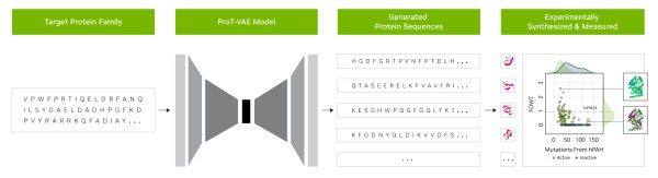 vozyne的ProT-VAE流程采用了NVIDIA BioNeMo中强大的Transformer模型,生成有用的蛋白质,进而助力药物研发和能源领域实现可持续性。
