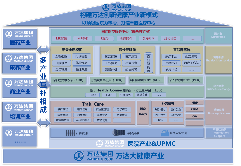 本案例以构建以人为本的全程康养服务,打造卓越医疗中心为目标,以患者为中心重塑医疗转型,创新技术应用助推智慧医院发展,探视大健康新业态打造“万达云上健康”,反哺赋能打造大健康产业航母。