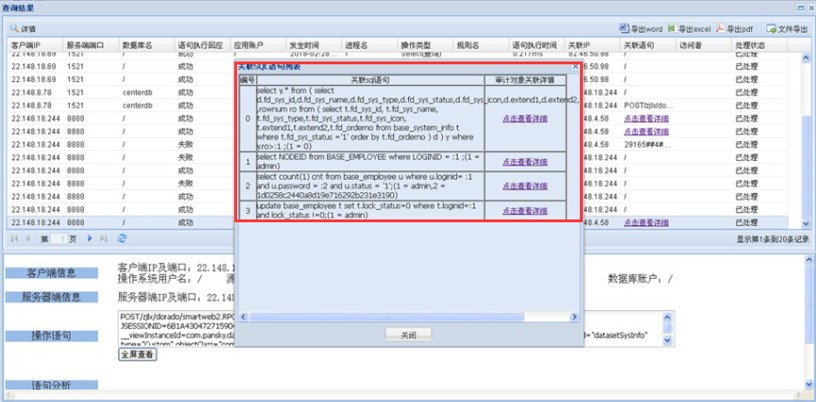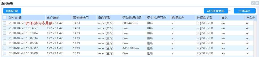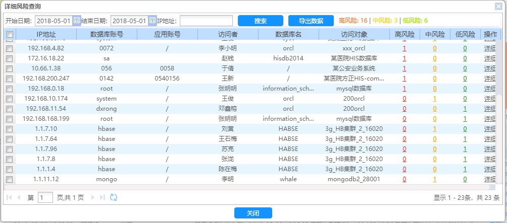 2)针对高危数据删除、数据导出操作能及时阻断,并预警。