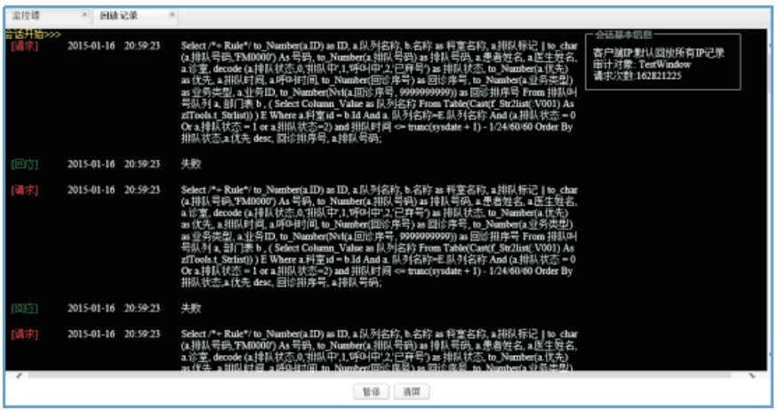 直观效果:对数据库及核心业务HIS应用全方位监控记录并及时告警,准确定位到人