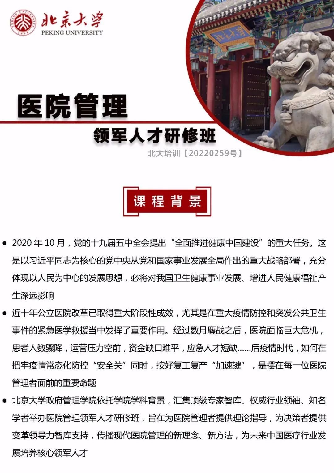 2月25日正式开课!北京大学医院管理领军人才研修班报名中