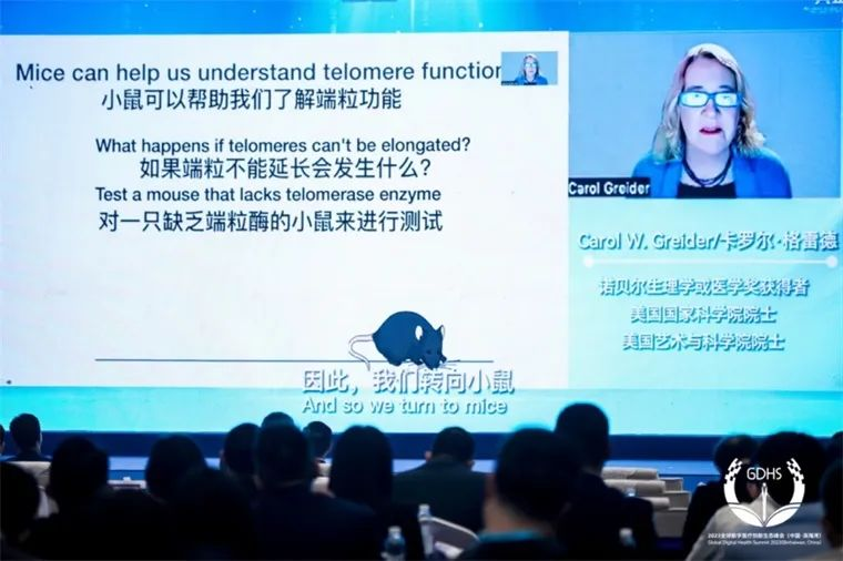 2009年诺贝尔生理学或医学奖获得者、美国国家科学院院士、美国艺术与科学院院士、美国约翰·霍普金斯大学分子生物学和遗传学系主任卡罗尔·格雷德以“技术创新对全球人类健康的影响与突破”为主题,分享了对端粒和端粒酶长达35年的研究经验。