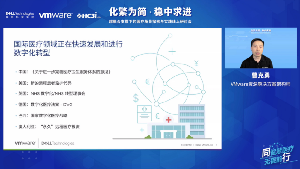 “VMware希望通过提供端到端的医疗数字化基础架构平台,为改造医疗IT基础架构、增强互联网医疗、支持员工远程办公、提升患者服务体验全面赋能,助力医院加速医疗数字化基础建设进程。”曹克勇说。