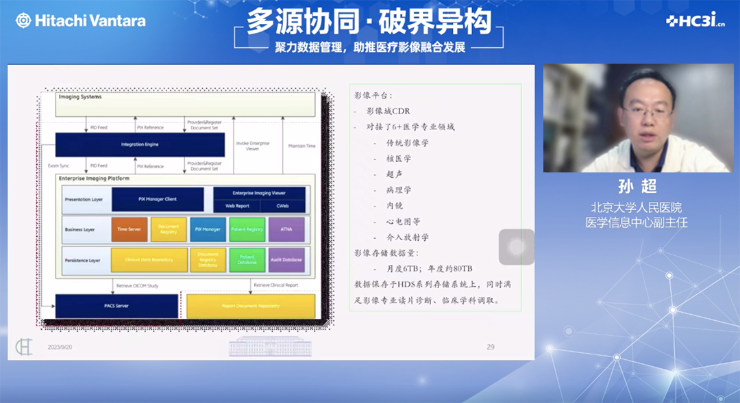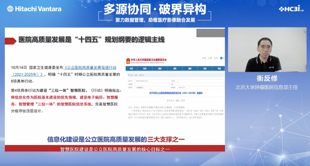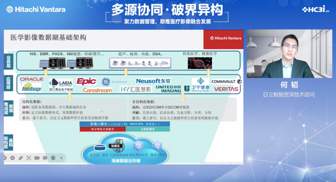 为帮助医疗行业持续挖掘数据价值、为医疗影像发展提供有力支撑,由HC3i数字医疗网、日立数据共同举办的《聚力数据管理,助推医疗影像融合发展》线上研讨会于2023年9月20日顺利召开。北京大学肿瘤医院信息部主任衡反修、北京大学人民医院医学信息中心副主任孙超、日立数据资深技术顾问何韬共同出席本次会议,并发表了精彩分享。
