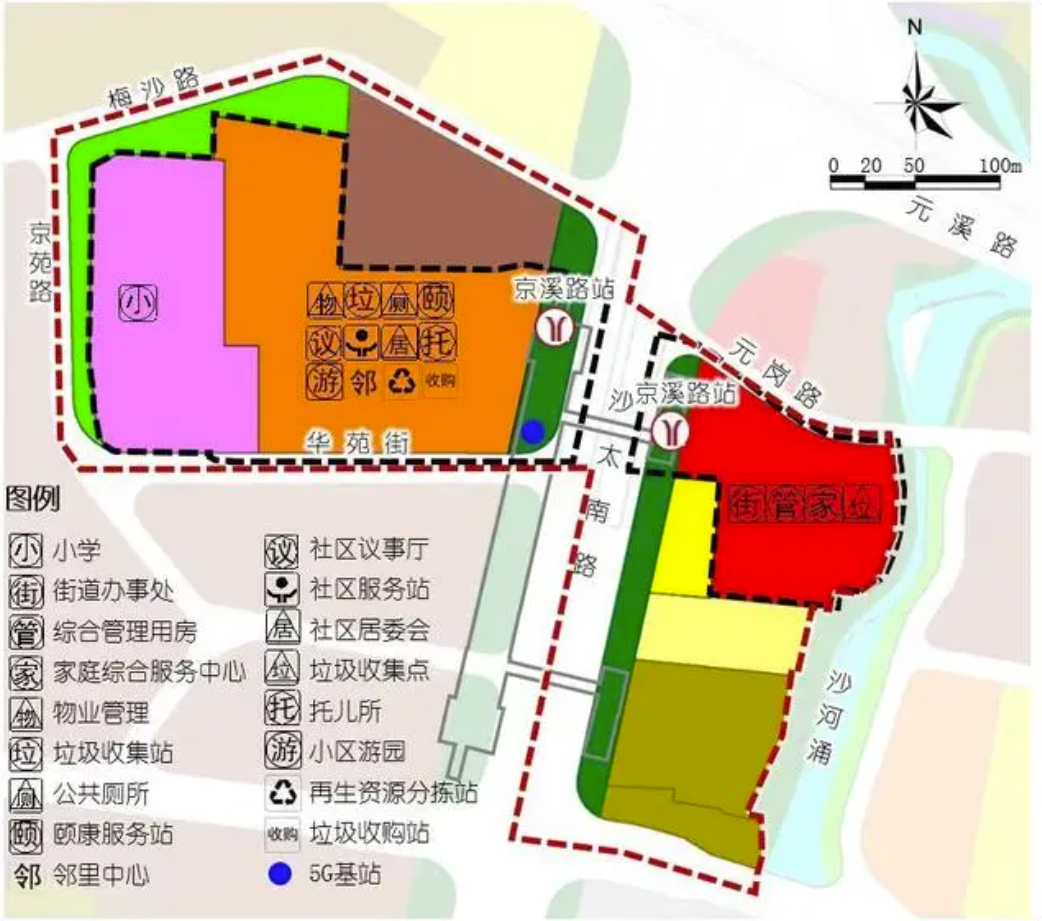 提高公共服务配套,补齐区域公服短板。项目改造范围内共配置27处公共服务及市政公用设施,其中居住类18处公服设施,包括36班学校、邻里中心、再生资源中转站和回收站等,总建筑面积约2.60万平方米,是住宅建筑面积的26%,极大地提升了片区公共服务能力。