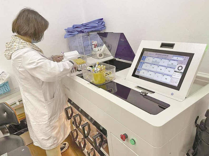 医生从智能分拣机上取出血样去检验
