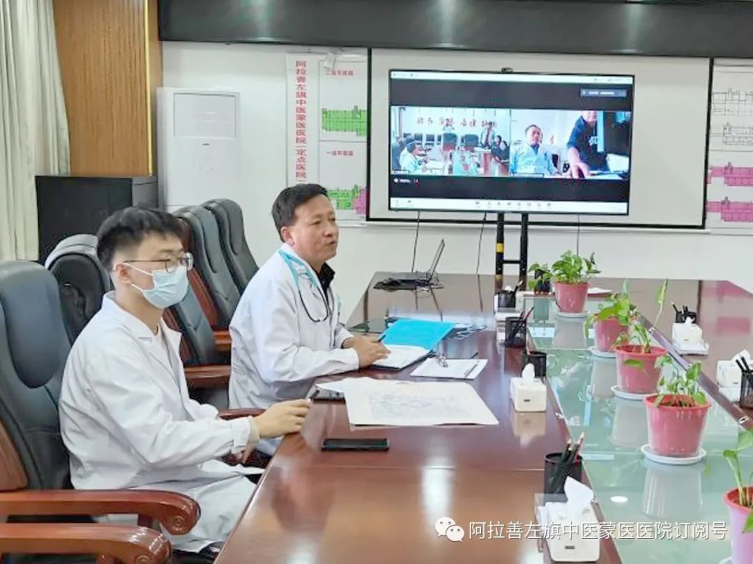 10月23日,阿左旗中医蒙医医院内科就一位左肺下叶背段肺癌、纵膈淋巴结转移,颅内多发占位性病变(考虑转移瘤可能)病人的进一步诊疗与内蒙古肿瘤医院肿瘤内科主任温珍平进行远程会诊和病例讨论。我院内科主任陈天华就患者既往诊治经过、现阶段症状体征、目前治疗存在的问题等做了病例汇报,温珍平主任根据影像学以及检验、检查结果进一步明确了诊疗方向,制定了下一步治疗方案,并围绕肿瘤疾病的规范化诊治和医学新进展给予相应的建议和深入的指导。