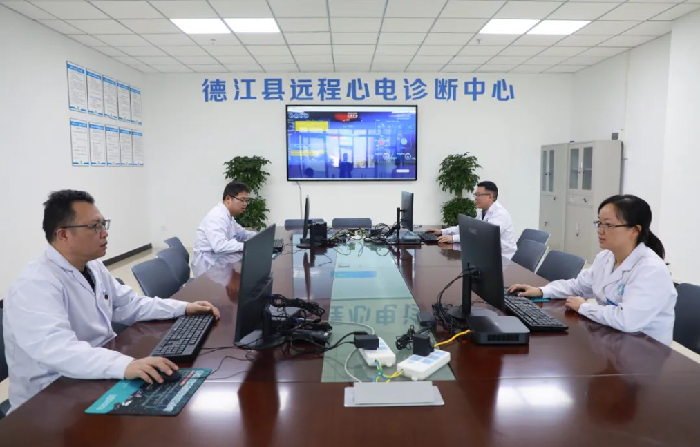 在院外,如何让乡村群众少跑腿就能享受到三甲医院的医疗服务,德江县人民医院以千县工程项目建设20大县域医疗服务中心为契机,深入推进“千县工程”,先后把远程诊断、医学影像诊断、心电诊断的优质医疗资源通过数据延伸至基层卫生院和村卫生室。德江县人民医院智能化影像中心积极探索创新模式,实现“破冰之效”,以乡镇卫生院、县域民营医院为网底,通过专网形成互联互通、信息共享建立起影像诊断、质量控制、费用结算、沟通协调等一系列工作保障机制,实现县域网络内各单位资源共享,就医群众在乡镇卫生院影像学检查后,图像实时上传到医学影像诊断中心,由中心专家10分钟内出具诊断报告。中心投用以来,已成功为县域乡镇卫生院医共体成员单位及民营医院就医患者提供32371人次的远程影像诊断服务,切实让县域优质医疗资源通过数据直达基层百姓。同步推进实施的“心电一张网”项目更是把心电诊断下沉的村卫生室,村民在村卫生室做的心电图通过“心电一张网”便可以第一时间上传至24小时待命胸痛中心各相关科室,第一时间接收并迅速判读,及时做出预警,筛查出需紧急治疗的患者及时展开专业救治。从而打破地域限制、实现心电信息互联互通,实现“基层检查,中心诊断,远程心电零距离”,让优质医疗服务更加可及。