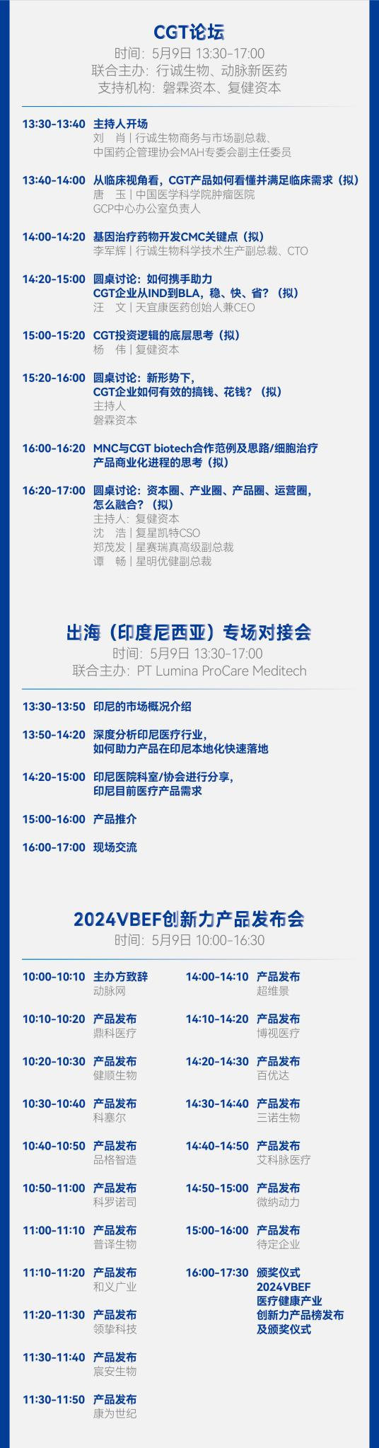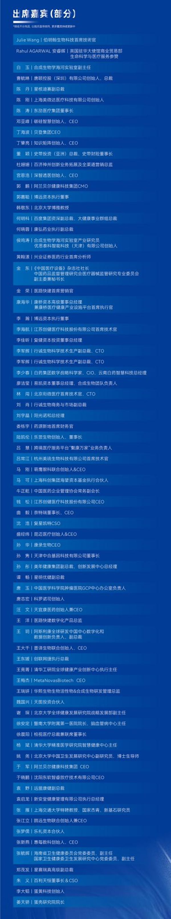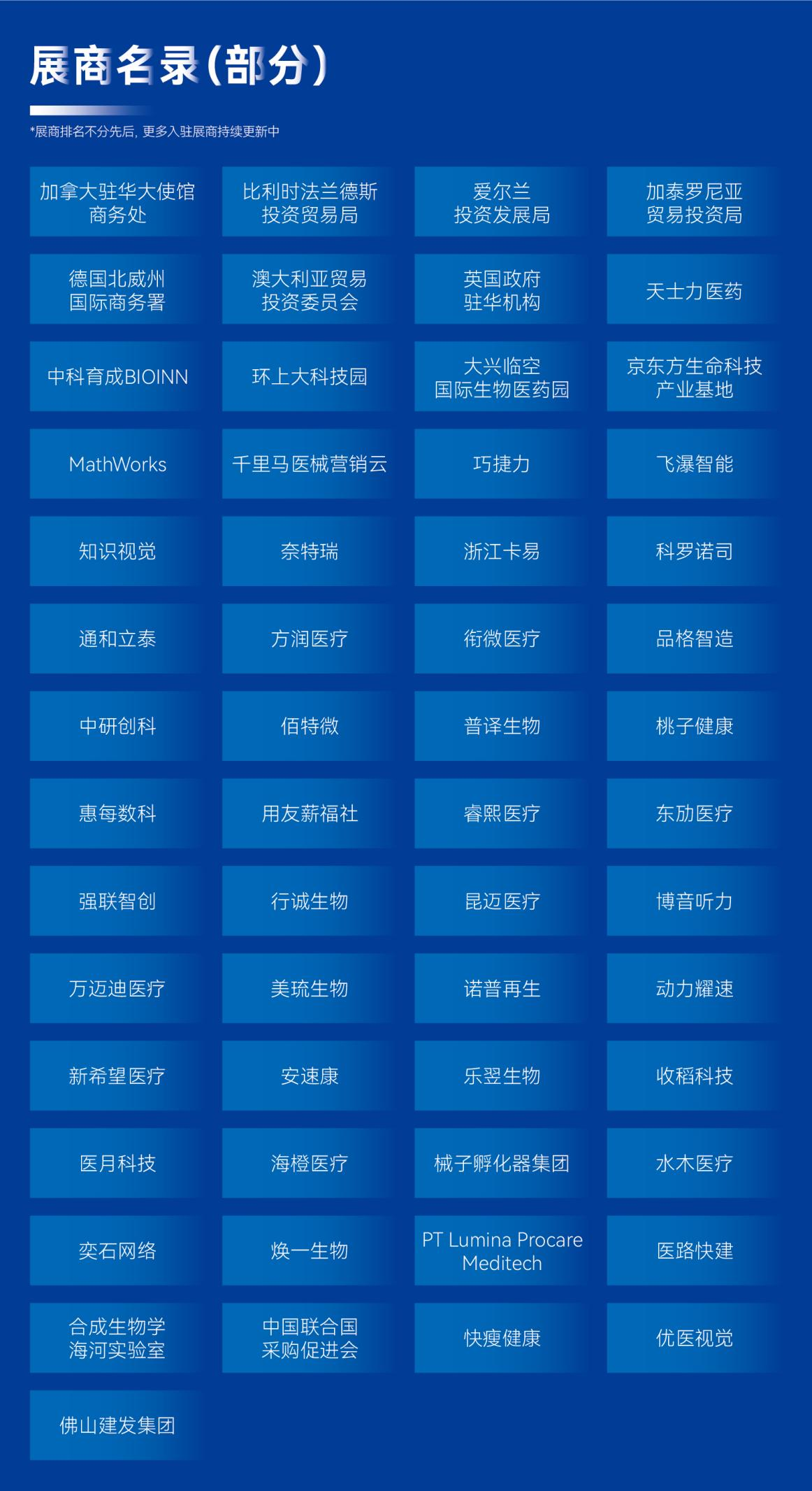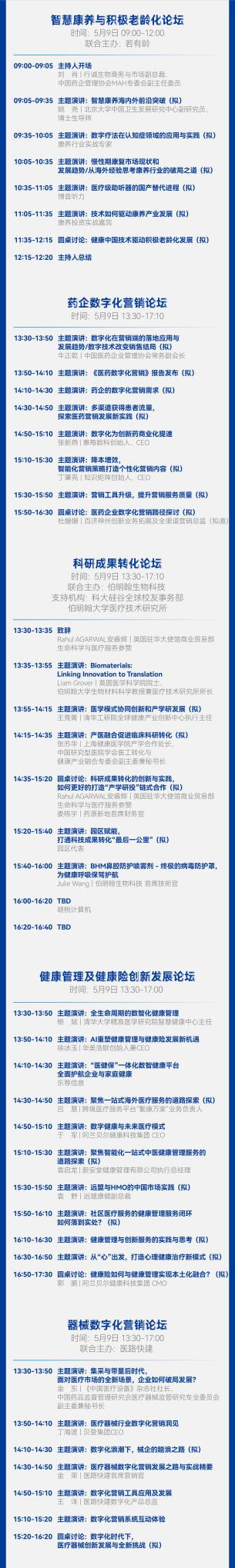 大会合作媒体:HC3i数字医疗网、赛柏蓝、赛柏蓝器械、药店经理人、深蓝观、投资界、新芽、医学界、健康界、八点健闻、E药经理人、MedWorld器械世界、生物谷、一医械千里、ECV、佰傲谷、药咖荟、商图、士研生命科学、医工学人、贝壳社、白鲸出海、活动家、杉树园、药方舟、智医讯、求实药社、创业邦、肽度TIMEDOO、思齐圈、转化医学网、HC3i中数新医、春雷社、云掌财经、CCMTV、药通社、医脉同道、生物工艺百晓生、药链圈、快速问医生、BIG生物创新社、泽桥医疗、美柏医健、医疗器械创新网