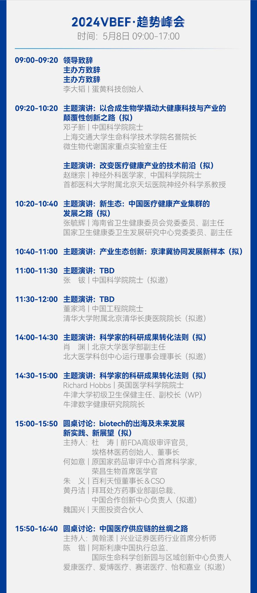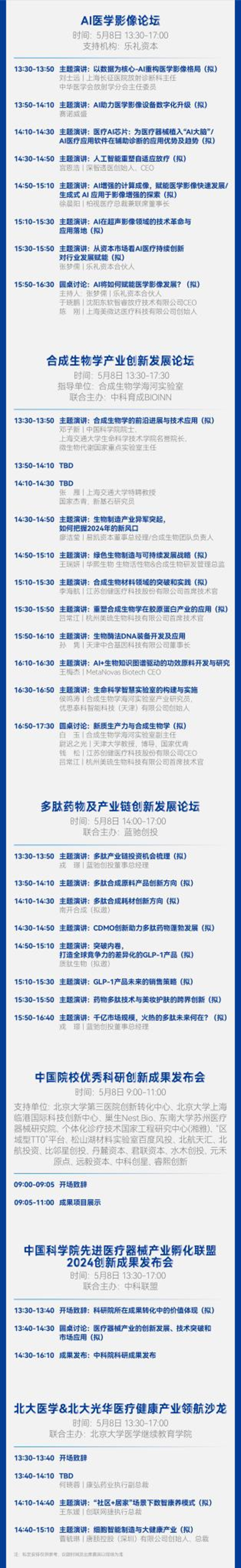 论坛支持机构:中国信息协会医疗卫生和健康产业分会、科大硅谷全球校友事务部、伯明翰大学医疗技术研究所、合成生物学海河实验室、北京大学上海临港国际科技创新中心、北京大学第三医院创新转化中心、个体化诊疗技术国家工程研究中心(湘雅)、中国医疗器械行业协会数字疗法专业委员会、君联资本、百度风投、中科创星、比邻星创投、北航投资、磐霖资本、远毅资本、水木创投、北航天汇、松山湖材料实验室、东南大学苏州医疗器械研究院、“区域型TTO”平台、元禾原点、复健资本、铭丰资本、乐礼资本、丹麓资本、睿熙创新、人保股权、中科育成BIOINN