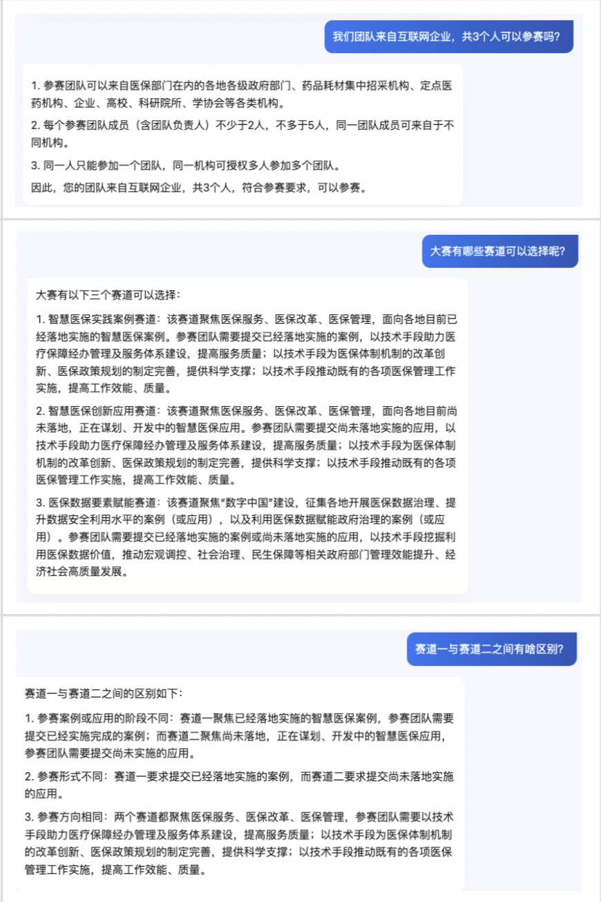 作为全球领先的AI科技公司,百度在打造垂类大模型具有天然的优势和深厚的积累,在数据量、技术底座等方面均领跑行业。以百度打造的首个产业级医疗大模型——灵医大模型为例,它持续输入百度沉淀的覆盖“医-患-药”全场景的医疗健康数据和权威医学知识,保证了大模型的回答有源可溯和专业权威。在百度的大模型和专业权威信息的加持下,此次上线的赛事AI助手也能充分助力本次智慧医保赛事顺利开展。