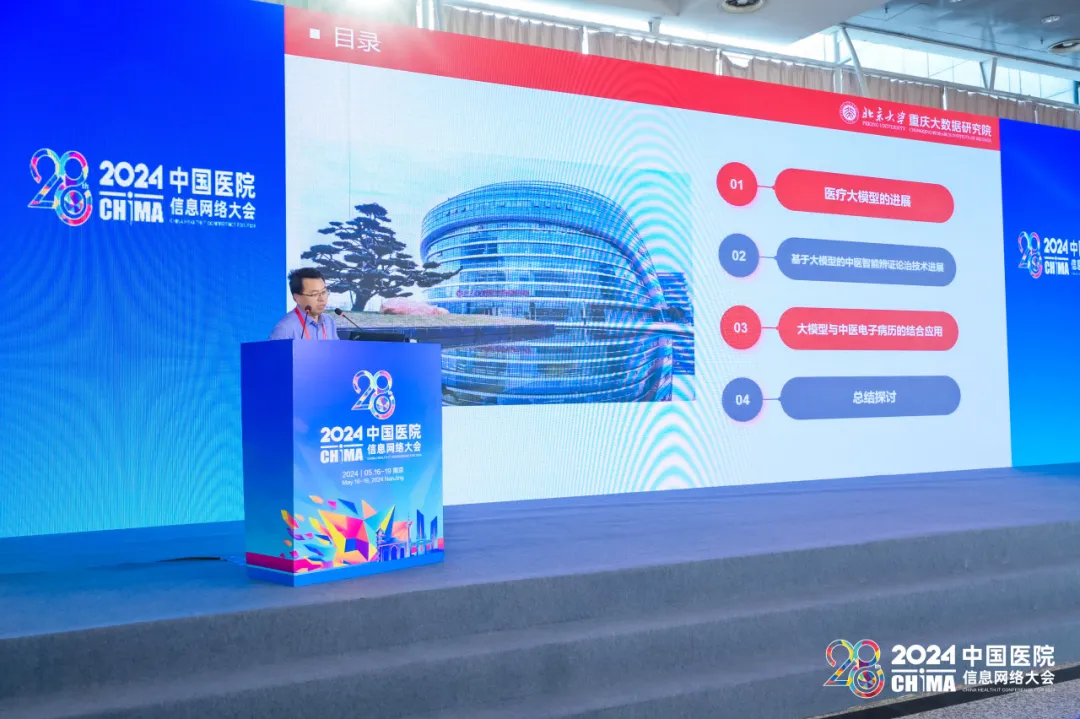 5月18日,2024年度中国医院信息网络大会(CHIMA 2024)在南京国际展览中心召开,北京大学重庆大数据研究院智慧中西医研究中心副主任黄新霆受邀出席,在“电子病历建设与应用”论坛发表《基于大模型的中医智能辨证论治在中医电子病历应用探讨》主题演讲。