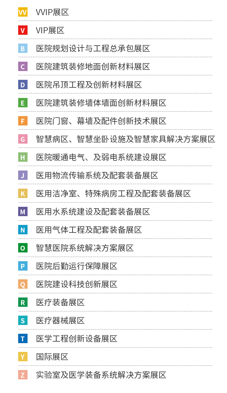展会展品涵盖医院规划设计与工程总承包、医院建筑装修地面、吊顶、墙面创新材料、医院室内环境装饰解决方案、医院建设门窗及配件创新技术、医用家具、医用洁净室、特殊病房工程、医用暖通电气及弱电系统建设、医用水系统建设、医用气体工程、医用物流传输系统、智慧病区、智慧坐卧设施及智慧家具解决方案、智慧医院系统解决方案及后勤运行保障、实验室及医学装备系统解决方案等各个板块,完整覆盖医院建设全过程系统解决方案,一站式解决医院建设者所有学习交流采购需求。