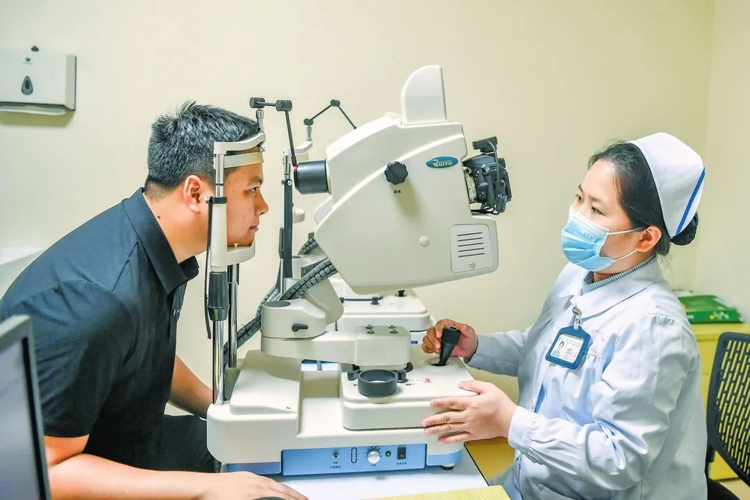 “请目视前方,稍作等待。”在护士的引导下,患者将头部靠近检查机器。随着一道亮光闪过,眼底摄片筛查完毕,一旁的打印机立即将检查结果呈现在了纸面上——左右眼均未发现明显异常,整个检查过程不过数分钟。