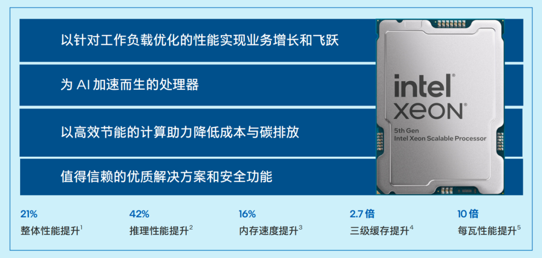 又比如第五代至强®与上一代产品在软件和平台上兼容,因此在部署新系统时可以大大减少测试和验证工作。