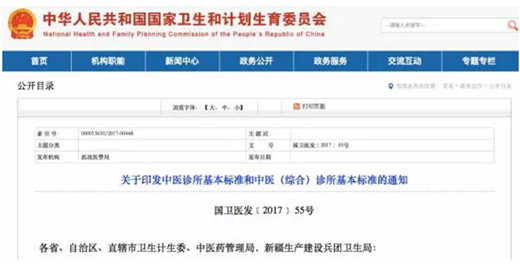 为促进中医诊所建设和发展,组织实施好中医诊所备案工作,国家卫生计生委和国家中医药管理局组织制定了《中医诊所基本标准》和《中医(综合)诊所基本标准》。现印发给你们,请遵照执行,并将有关事宜通知如下: