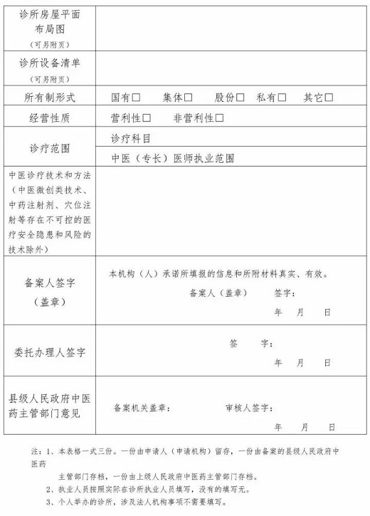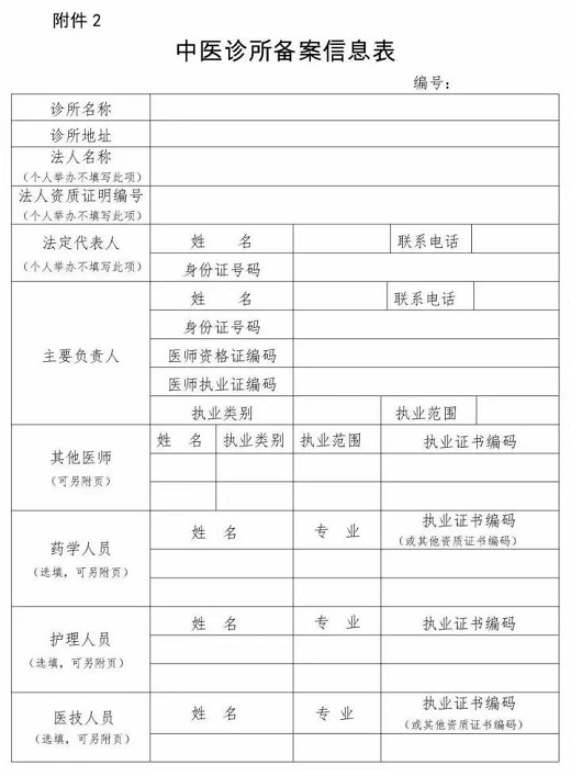 《中医诊所备案信息表》公布!