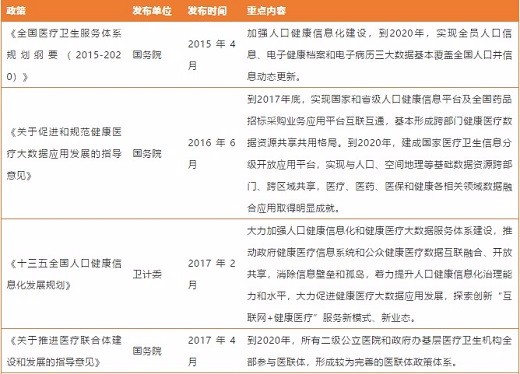 事实上,自2015年4月,国务院发布《全国医疗卫生服务体系规划纲要(2015-2020)》,提出加强人口健康信息化建设,到2020年,实现全员人口信息、电子健康档案和电子病历三大数据基本覆盖全国人口并信息动态更新,我国陆续出台了一系列加速医疗信息化产业发展的政策。