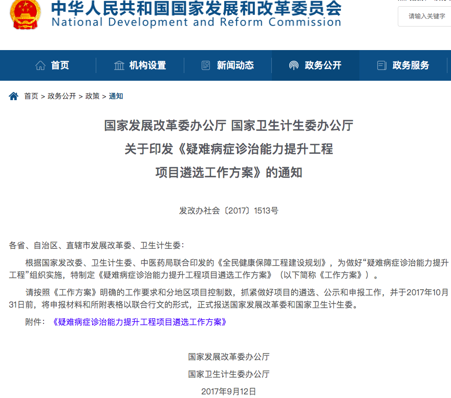 疑难病症诊治能力提升工程最早可追溯到2016年国家发改委公布《全民健康保障工程建设规划》(下称《规划》),隶属《规划》发布的6个建设工程之一。《规划》指出,该工程旨在针对严重危害人民群众健康的肿瘤、心脑血管、呼吸系统等重点病种,完善区域内学科建制,在全国范围内遴选约100所特色优势突出、医疗技术水平较高、有杰出的学科带头人及合理的人才梯队、辐射带动能力较强的省部级医院支持建设,显著提升省域内相关专科综合诊治能力和技术水平。