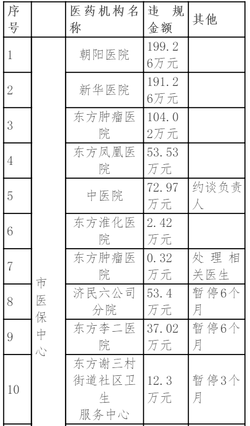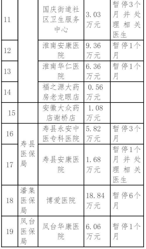 根据淮南市医保局的消息,此次涉及违规的包括当地的肿瘤医院、中医院、社区卫生服务中心、药店等机构,涉及违规金额近800万元,其中朝阳医院与新华医院的违规金额最高,分别达到199.26万元、191.26万元,部分医院被处以暂停1-6个月的医保结算服务等措施。