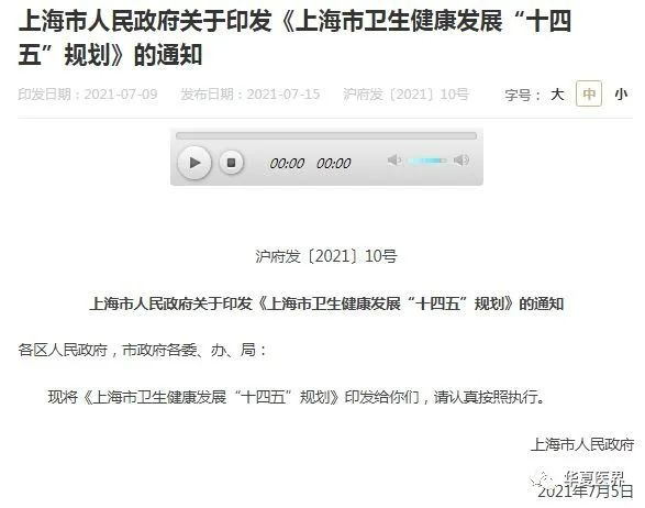 7月15日,上海市人民政府印发《上海市卫生健康发展“十四五”规划》的通知。