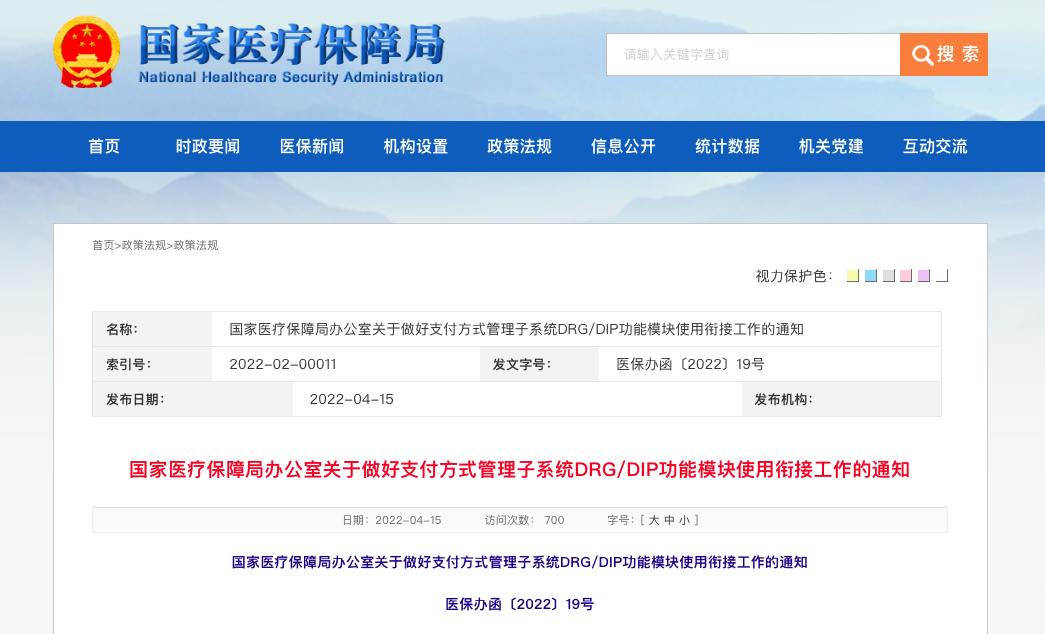国家医疗保障局办公室关于做好支付方式管理子系统DRG/DIP功能模块使用衔接工作的通知