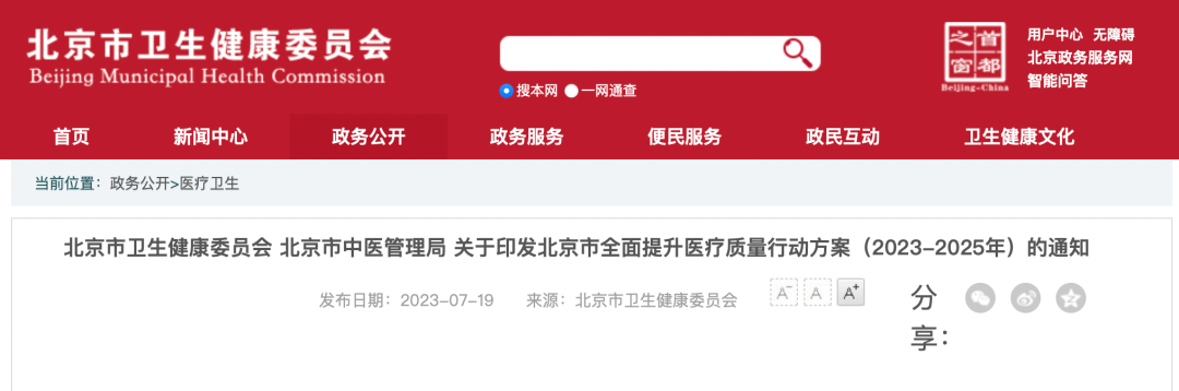 7月19日,北京市卫生健康委员会联合北京市中医管理局印发《北京市全面提升医疗质量行动方案(2023-2025年)》(以下简称北京《方案》)。北京《方案》在国家版《行动计划》的基础上,将工作任务进行了精简,数量上从28个缩减为11个,将5项行动融入1项工作任务。
