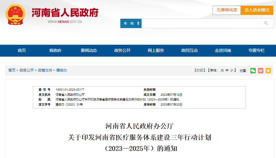 河南省医疗服务体系建设三年行动计划