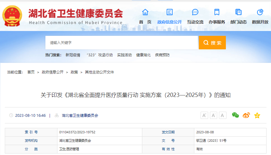 湖北省全面提升医疗质量行动实施方案(2023—2025年)
