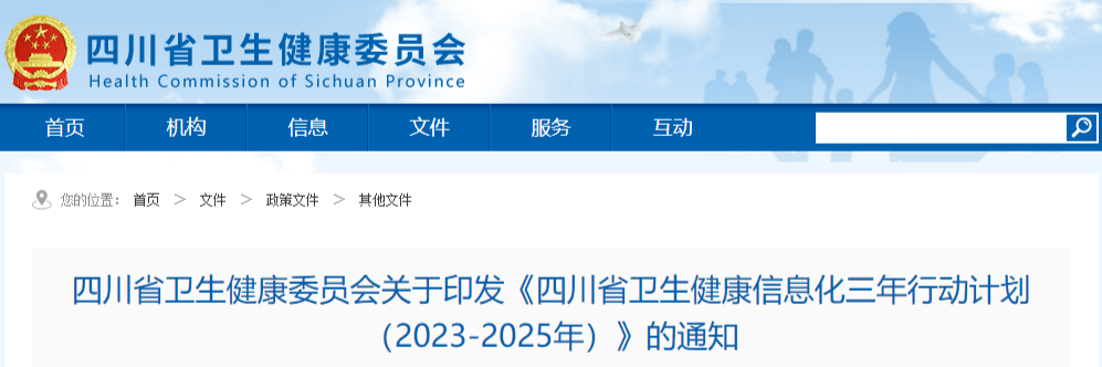 近日,四川省卫生健康委员会发布了《四川省卫生健康信息化三年行动计划(2023-2025年)》(以下简称“《计划》”),以加快构建数字健康发展新高地,助力四川省卫生健康事业高质量发展。《计划》从5大方面部署了22项重点任务,对四川省三年的卫生健康信息化建设作出了规划。