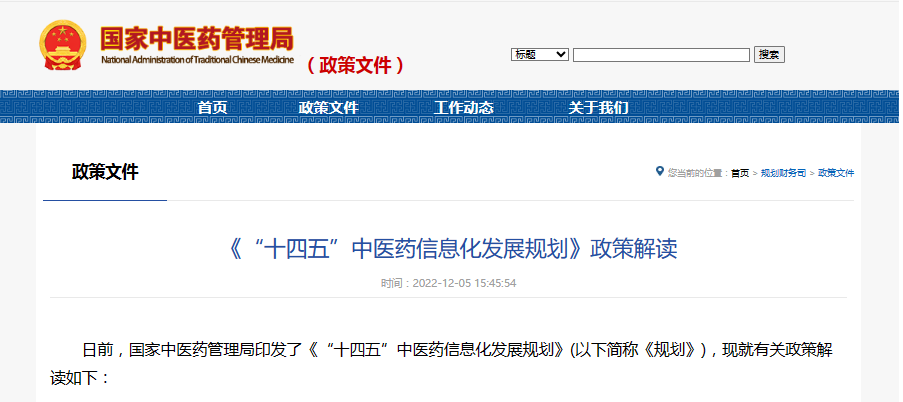 为贯彻落实党中央、国务院决策部署,加大“十四五”期间对中医药发展的支持和促进力度,着力推动中医药振兴发展,国家中医药管理局印发了《“十四五”中医药信息化发展规划》(以下简称《规划》),现就有关政策解读如下: