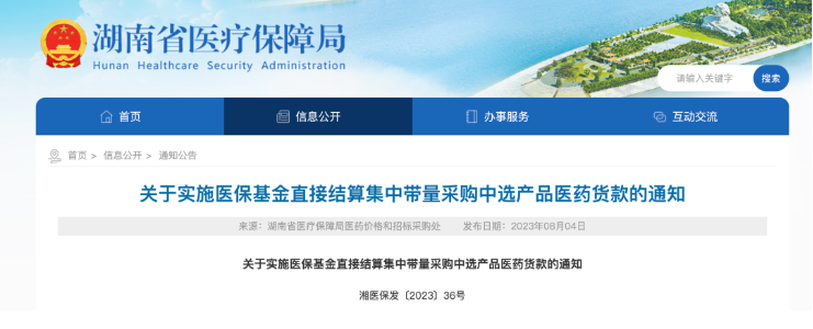 《通知》明确,自2023年10月1日起,在全省范围内实施集中带量采购中选药品和医用耗材货款由医保基金直接结算工作。