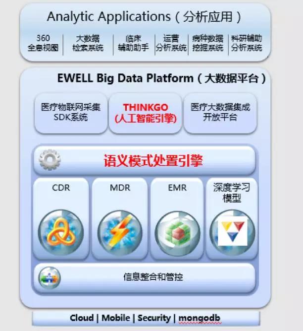 2016年年底,医惠科技作为技术支持方开始推进IBM Watson在中国的本土化,目标是把人工智能技术作为一种普遍化、常态化的临床辅助服务支持医生的临床辅助决策。何国平指出,医惠科技针对中国医疗行业的市场需求及大数据人工智能技术的发展,开发了EWELL Big Data Platform大数据平台用于支持大数据及人工智能的应用开发,通过该大数据平台可以便捷把分散在各子业务系统内的临床数据汇聚、清洗、转化、标准化进行统一储存,形成专业数据中心。