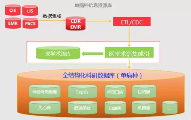 构建全结构化单病种数据库。通过结构化语义平台,能够按照临床病种将医疗机构大量历史病历进行归并、处理、清洗、有效过滤无效信息,只提取有用的信息,从而形成全结构化单病种数据库。