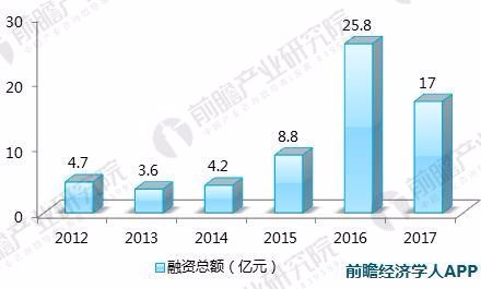 图表4: 2011-2017年国内医疗人工智能融资额走势(单位:亿元)