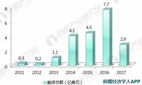 图表3: 2011-2017年国外医疗人工智能融资额走势(单位:亿美元)